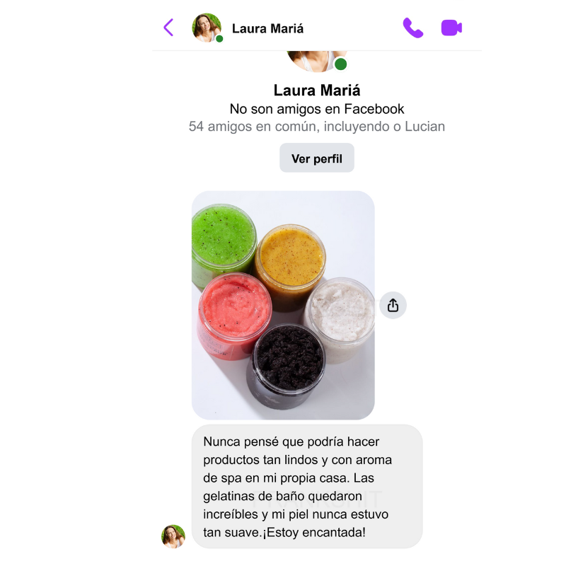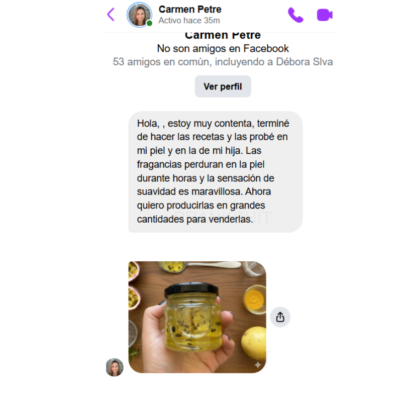 María Valentina Ríos, creadora de cosméticos artesanales y especialista en productos tipo SPA, desarrolló esta colección pensando en mujeres que desean crear productos hermosos, aromáticos y de apariencia lujosa, incluso sin experiencia previa.